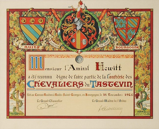 Assim, para melhor honrar essa divindade protetora dos sentidos – e, portanto, dos prazeres -, nada melhor que criar para ela um templo, um rito e um cerimonial em tudo análogos aos de qualquer outro templo, igreja ou sociedade secreta. Criou-se então a Confraria do Tastevin, a 16 de novembro de 1934. Quase ao mesmo tempo, seus fundadores – os principais viticultores da Borgonha – compraram o Castelo Clos de Vougeot, um enorme palácio do século 12, para ser sua sede mundial. Desde então, o presidente da confraria recebe o título de grão-mestre. Seus membros, os cavaleiros, passam por iniciações que lhes conferem graus, como na boa e velha maçonaria. A Confraria logo se espalhou por vários outros países, que hoje abrigam “capítulos” da ordem.