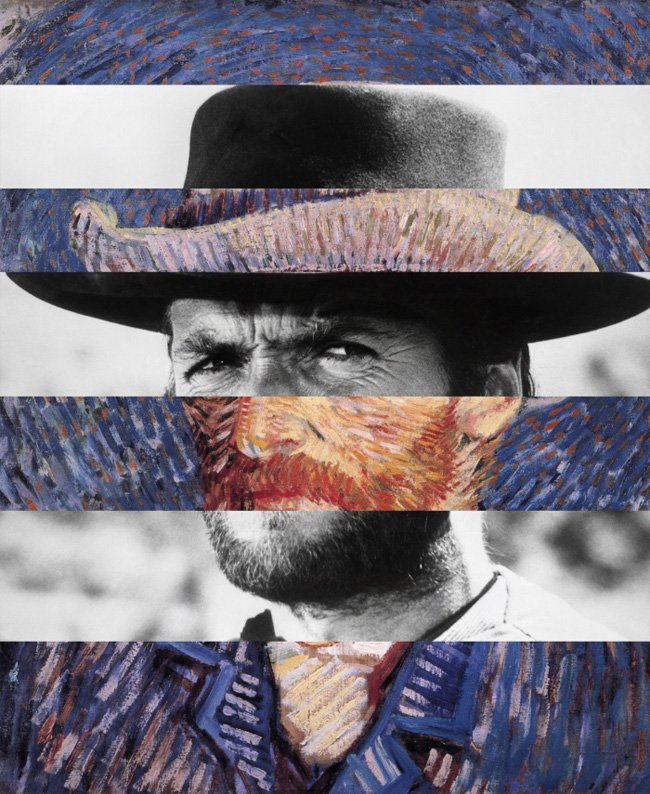 O chapéu do Autorretrato de Vincent van Gogh (1887-1888) torna-se o chapéu de cowboy de Clint Eastwood em Por um punhado de dólares, de Sergio Leone. Uma simbiose perfeita.