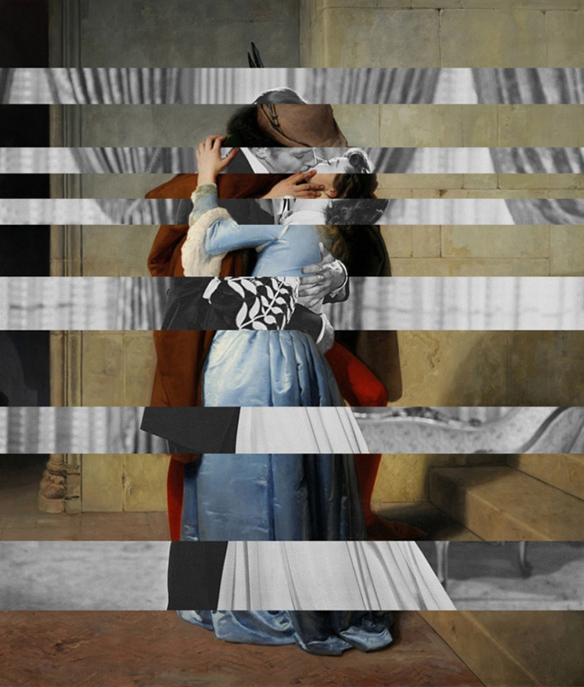 O Beijo, de (1859) conservado na Pinacoteca de Brera, em Milão, se transforma no beijo entre Clark Gable e Vivien Leigh no filme E o vento levou. Explica o autor: O toque a mais dos meus trabalhos surge do entrecruzamento dos vários níveis. Isso acontece na maior parte das obras, mas é sobretudo em O Beijo, com as mãos da pintura que entram na fotografia e vice-versa.