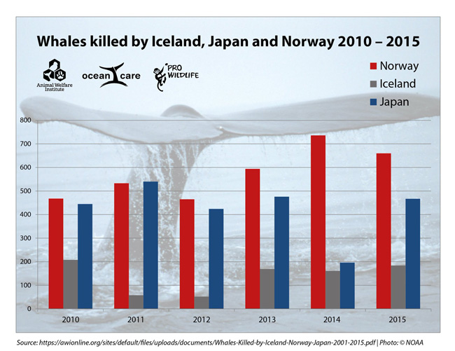 O governo da Noruega argumenta que possui estoques suficientes para sustentar a caça, e autorizou neste ano a captura de 999 baleias, em comparação com a cota de 199 permitida no ano passado.