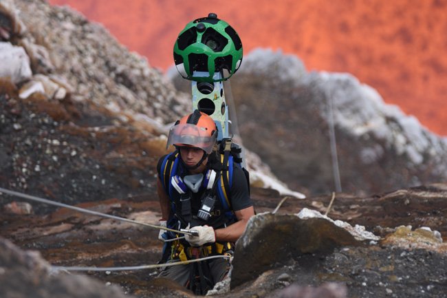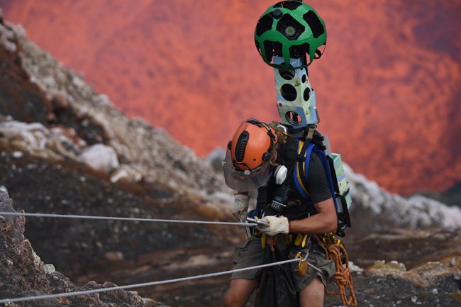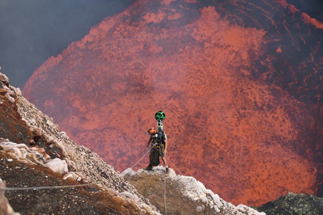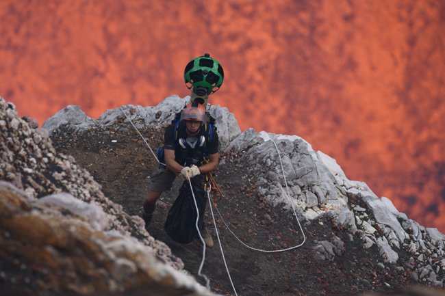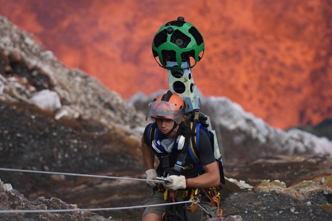 Se desejam assistir ao espetáculo do magma fervente no interior de um lago de lava sem se levantar da poltrona e sem risco de queimaduras fatais, esta é a boa oportunidade: Geoff Mackley e Chris Horsly, dois exploradores da Ultimate Expeditions Vulcano levaram o trekker do Google Street View dentro da cratera Marum, situada no topo do vulcão ativo da ilha de Ambrym, no arquipélago das Vanuatu, no sul do Pacífico.