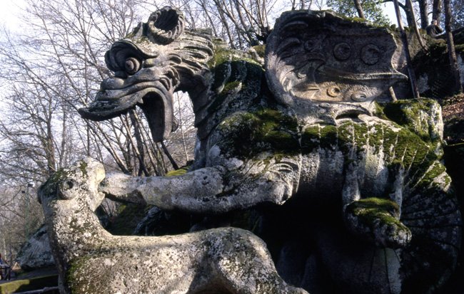 A Itália é um museu a céu aberto, e nesse país poucos lugares representam melhor isso do que o Parque dos Monstros, também chamado de Bosque Sagrado de Bomarzo, na província de Viterbo, Itália Central. Visitei várias vezes esse complexo monumental, sem nunca me decidir se o que mais me impressiona nele é a extraordinária riqueza do seu conjunto de construções e esculturas de inspiração esotérica, ou o tamanho e a intensidade do delírio do seu criador, o príncipe romano renascentista Pier Francesco Orsini.