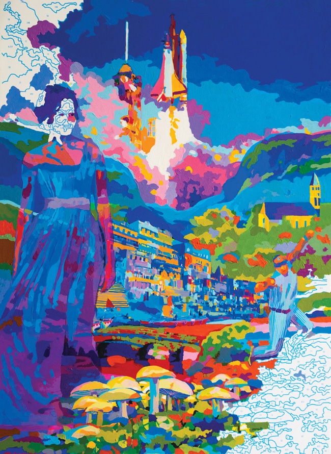 Uma imagem inspirada no romance “Os três estigmas”, de Palmer Eldritch , publicado em 1965. Nessa historia, mais que em outras, os estados de alucinação, de desagregação do ego, distorção do tempo e fusão com o mundo circundante emergem com prepotência acima das ações dos personagens.