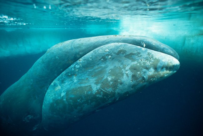10 Baleia da Groenlândia. Para defender a honra dos cetáceos temos a Balaena mysticetus, também conhecida como baleia ártica, que pode nadar naquelas águas gélidas durante 211 anos. O animal chega aos vinte metros de comprimento e 152 toneladas de peso. Foto: Martha Holmes.
