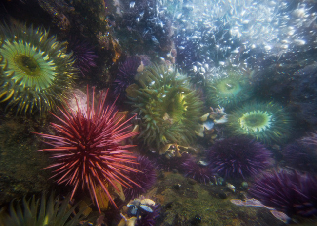 8 Ouriço vermelho do mar. Será a dieta à base de algas, ou o exoesqueleto cheio de espinhos pontudos que lhe permitem ótima defesa contra os predadores, o fato é que o Mesocentrotus franciscanus pode viver até 200 anos, colocando-se assim em quarto lugar na lista dos bichos mais longevos. Foto: Floris van Breugel.