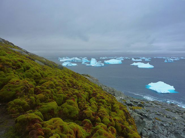 Áreas verdes como a da foto, na Ilha Green (Península Antártica) criarão paisagens muito bonitas naquela região.
