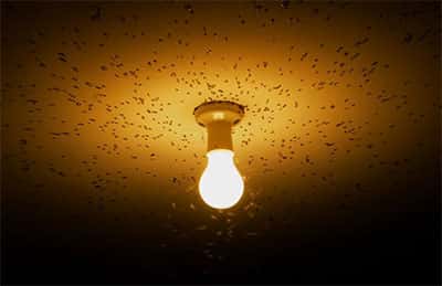 Os insetos voadores se sentem hipnotizados pela luz das lâmpadas artificiais. Este comportamento pode estar relacionado a uma confusão do sistema interno de navegação dos insetos.