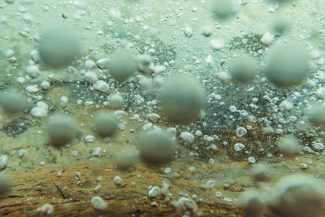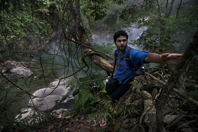 Eu voltei todos os anos desde a primeira visita em 2011, e o trabalho de campo sempre foi emocionante, exigente e, às vezes, perigoso. Uma história até apareceu na revista National Geographic. Eu estava preso numa pequena rocha de cerca do tamanho de uma folha de papel, de chinelos e bermuda, no meio de um rio de 80 graus C, e uma fonte termal que, bem, estava a um triz de ferver. E além do mais, era a floresta tropical Amazônica. Caiu uma chuva torrencial, não conseguia ver nada. O diferencial de temperatura deixava tudo branco. Era uma névoa cerrada. Intensa.