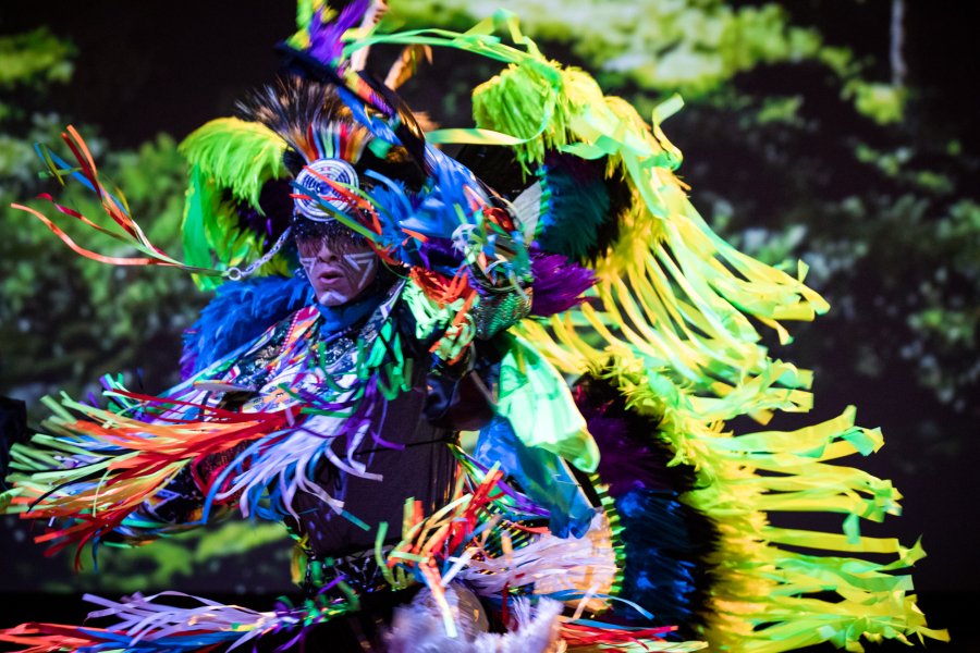 O índio lakota Canku One Star dança durante a performance Honor thy Mother.