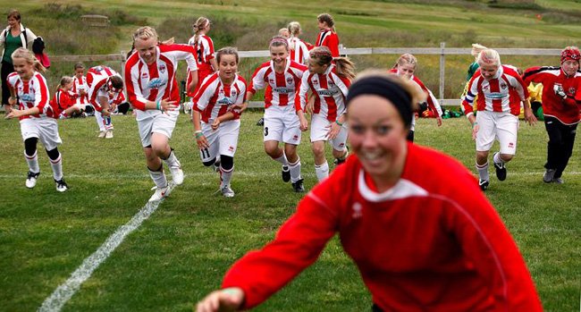 Depois de nosso passeio pelo parque Laugardalur, Gudberg Jónsson nos convida a voltar para sua casa. Do lado de fora, no jardim, seus dois filhos mais velhos – Jón Konrád, de 21 anos, e Birgir Ísar, de 15 –, falam comigo sobre álcool e cigarro. Jón bebe álcool, mas Birgir diz não conhecer ninguém em seu colégio que beba ou fume. Também falamos das aulas de futebol. Birgir treina cinco ou seis vezes por semana; Jón, que cursa o primeiro ano de Administração de Empresas na Universidade da Islândia, pratica cinco vezes. Os dois começaram a jogar bola como atividade extra-escolar quando tinham seis anos. “Temos muitos instrumentos em casa”, diz o pai. “Tentamos fazer com que gostassem de música. Antes tínhamos um cavalo. Minha mulher adora montar, mas não deu certo. No final, escolheram o futebol.” Alguma vez acharam que o treino era excessivo? Foi preciso pressioná-los para que treinassem quando teriam preferido fazer outra coisa? “Não, a gente se divertia jogando futebol”, responde Birgir. Jón completa: “Começamos a jogar e nos acostumamos, então continuamos jogando.”