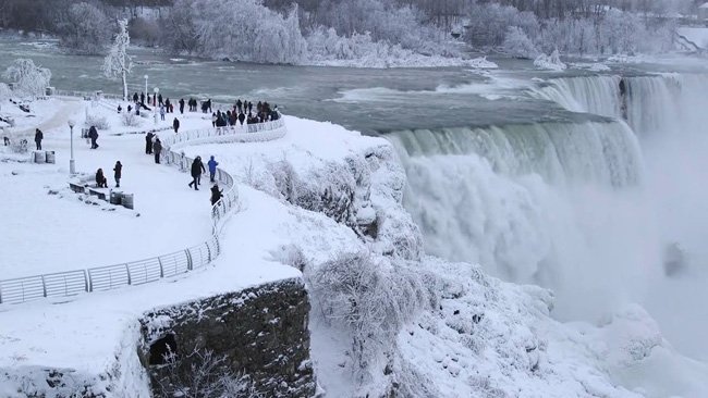 Nem mesmo as cataratas do Niagara escaparam aos efeitos do frio. Elas normalmente descarregam cerca de 682 mil litros de água por segundo. Desde o início da semana, com a temperatura oscilando ao redor dos 11 graus negativos, elas se encontram quase completamente congeladas e, segundo os especialistas, se as temperaturas se mantiverem assim tão baixas, se congelarão completamente dentro de um mês.