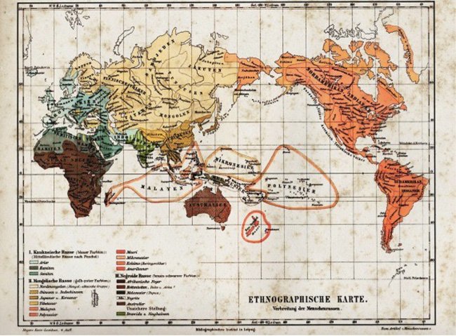 Um mapa alemão do século 19 com a distribuição das raças.