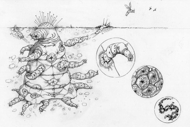 Evolução possível num mundo alienígena de uma simples molécula, capaz de se replicar, até se tornar um organismo complexo, composto por várias partes com funções distintas HELEN S. COOPER