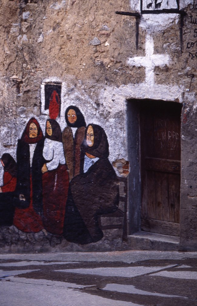 No coração da Sardenha, a cidadezinha de Orgozolo é toda decorada com grafitti com cenas da vida quotidiana dos seus moradores