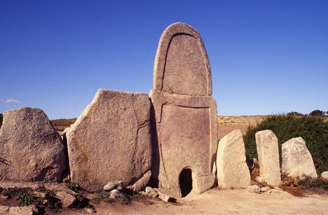 Há também, dessa época remota da história sarda, as “tumbas de gigantes”, enormes monumentos funerários de pedra esculpida e que realmente parecem feitos para abrigar corpos de gigantes. Ou então as domus de janas, “casas de bruxas”, que são na verdade necrópoles subterrâneas ou escavadas na rocha macia das paredes de colinas e montanhas. Segundo a lenda as janas são poderosas feiticeiras que, agora fantasmas, ainda moram dentro dessas casas (domus), cujas paredes são decoradas com símbolos mágicos talhados em relevo: cabeças de bois e de outros animais, chifres, espirais e grande variedade de desenhos geométricos.