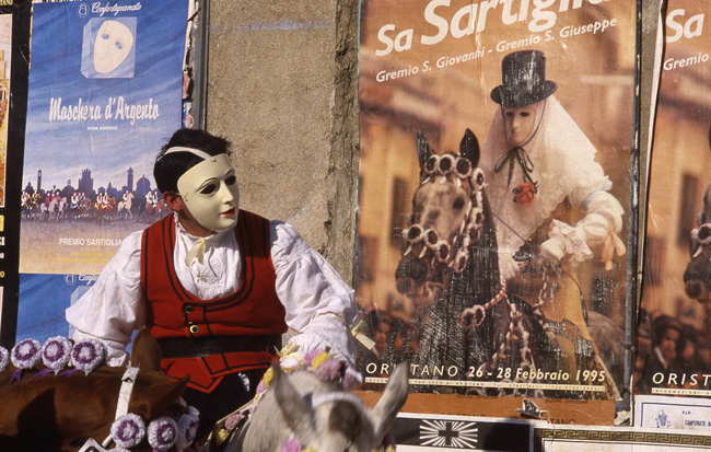 Em Oristano há uma fantástica festa anual de origem espanhola, a Sartiglia. Ela acontece em duas etapas, a primeira no último domingo antes da Quaresma, e a segunda parte na Terça Feira de Carnaval. A Sartiglia envolve toda a população da cidade. Há cortejos em trajes típicos e competições variadas de canto, poesia, dança e música instrumental. Mas a principal competição é equestre: cavaleiros mascarados e vestidos com roupas medievais montam cavalos ajaezados com fina pompa. Cavalo a galope, o cavaleiro munido de uma longa lança deve agarrar com ela uma estrela de metal suspensa por uma corda. Poderes mágicos são atribuídos aos cavaleiros vencedores, e pretende-se que a fartura da próxima colheita depende do número de estrelas que cada competidor consegue arrebatar.
