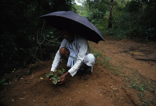 3 – O indiano Kumaraswami (na foto) é o responsável pela proteção das plantas que crescem na reserva especial criada nas imediações de uma aldeia da cidade de Bangalore (Índia meridional). Ele explica quais os riscos que ameaçam as plantas: a exploração excessiva do terreno e a destruição do meio ambiente natural pela urbanização; a cobiça desmedida de alguns laboratórios farmacêuticos que se apoderam das plantas cultivadas há milênios pelas populações locais, reivindicando a propriedade delas. Muitos fármacos, com efeito, são realizados extraindo-se substâncias presentes em algumas plantas, modificando sua estrutura molecular e potencializando os seus efeitos.