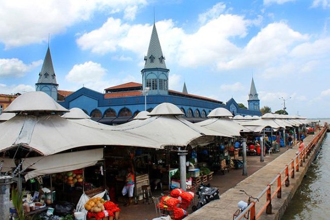Uma das feiras populares mais vibrantes do Brasil é sem dúvida o Mercado Ver-o-Peso, em Belém do Pará. Como em poucas outras cidades, esse mercado reúne diariamente vendedores e compradores de produtos que vão de peixes frescos a alimentos amazônicos, de animais vivos a banhos de ervas com promessas de propriedades medicinais. E essa mistura alucinante de cheiros e sabores vira um prato cheio para os turistas. O nome curioso vem do fato de o local ter servido de posto de fiscalização da coroa portuguesa dos produtos comercializados na região, onde funcionava a Casa de Haver O Peso, no século 17. O mercado propriamente dito surgiria a partir de 1847 com a construção de um mercado de peixes e carnes. Já o famoso prédio de metal, o Mercado de Ferro, foi inaugurado em 1901.